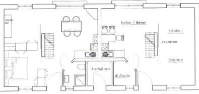 Die zwei barrierefreien Appartement 1 und 2 sind für 6 Personen geeignet und verfügen zusätzlich über ein Doppelbettschlafzimmer mit Dusche/WC im Dachgeschoss.